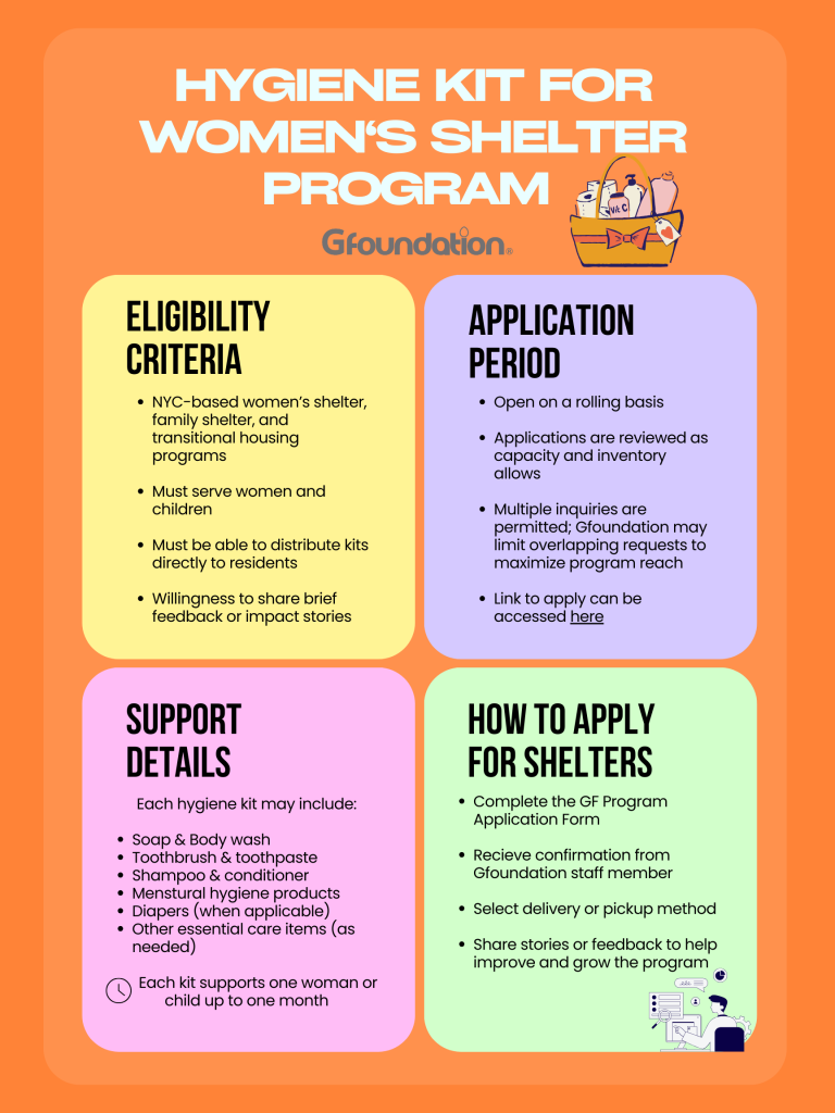 Shelters interested in receiving hygiene kits or partnering with Gfoundation can: