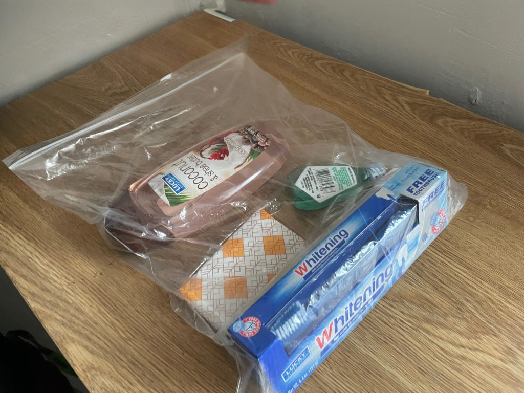 In one shelter Alyssa visited, the hygiene kit she received contained just a single pad, a small bar of soap, and a toothbrush for the week.